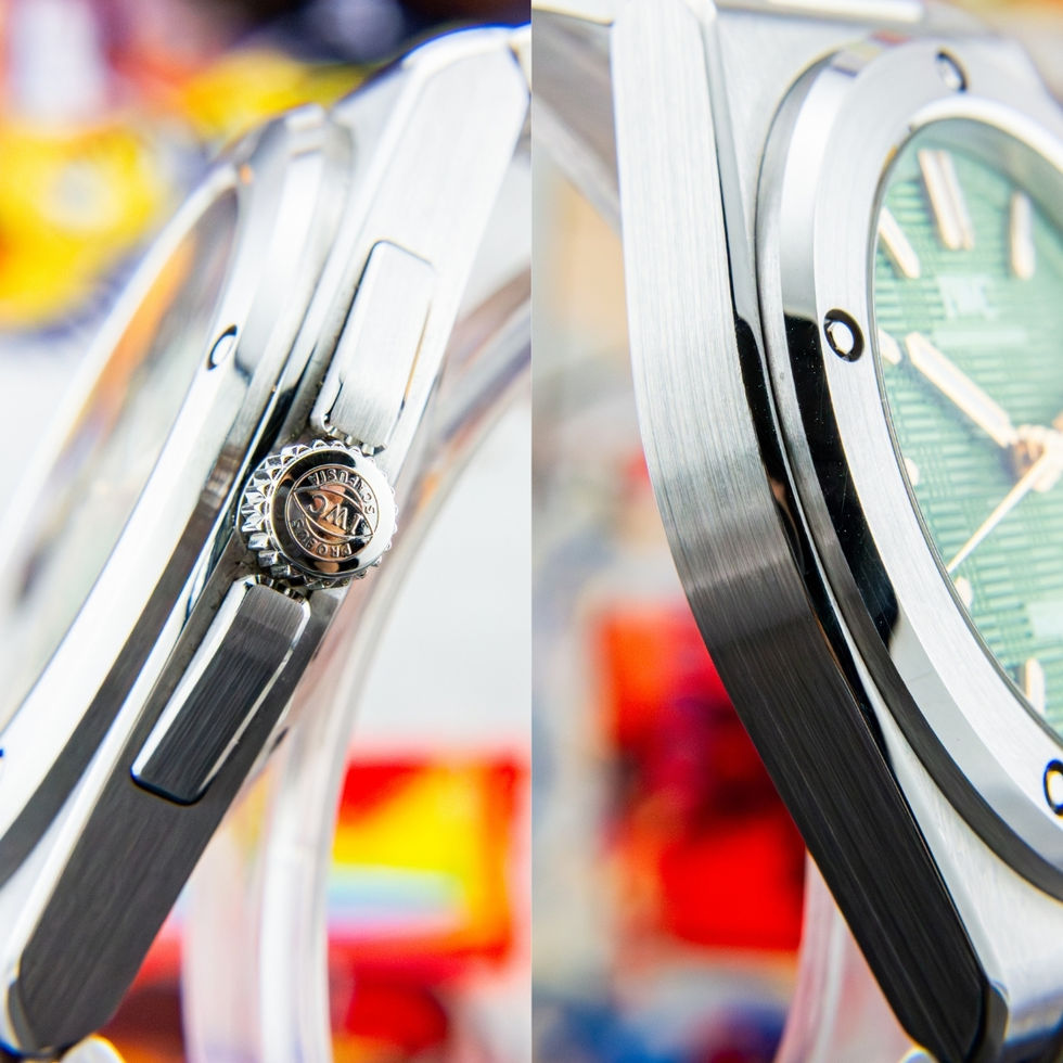 The green grid dial adds contemporary depth and visual texture, making it one of the most desirable configurations in the current Ingenieur lineup.